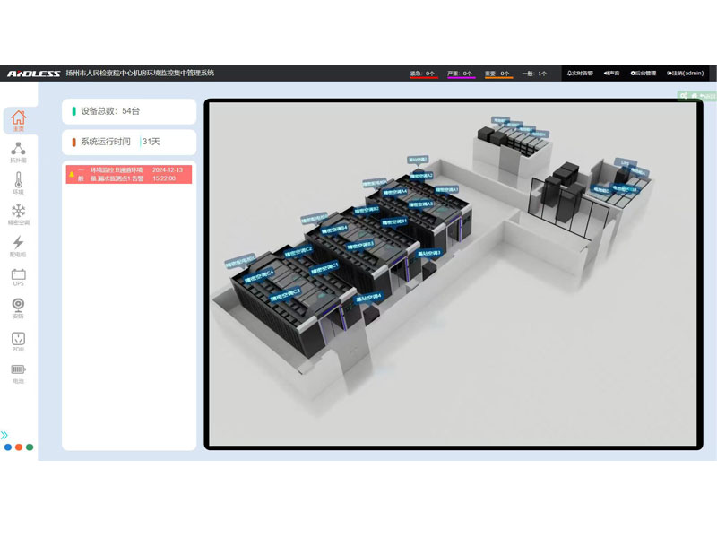 近期有幸為江蘇省某市檢察院提供三套安德力士品牌微模塊機(jī)房設(shè)備,涉及系統(tǒng)有:UPS不間斷電源、精密空調(diào)、機(jī)柜、配電、動力環(huán)境監(jiān)控等系統(tǒng);涉及主要設(shè)備有:UPS主機(jī)(30KVA、40KVA、300KVA)、鉛酸蓄電池(100AH64節(jié)、200AH128節(jié)、250AH320節(jié))、精密空調(diào)(行級25KW12臺、基站12.5KW4臺)、機(jī)柜51套,現(xiàn)已全部安裝調(diào)試完成。